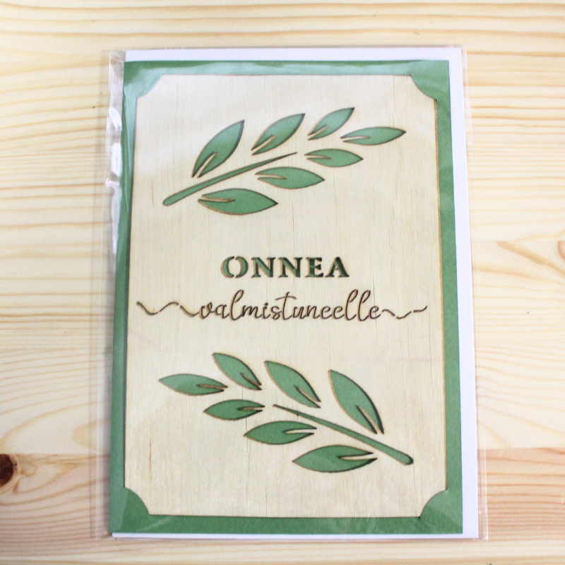 Ylioppilas puukortti vihreä "Onnea Valmistuneelle" kaksiosainen