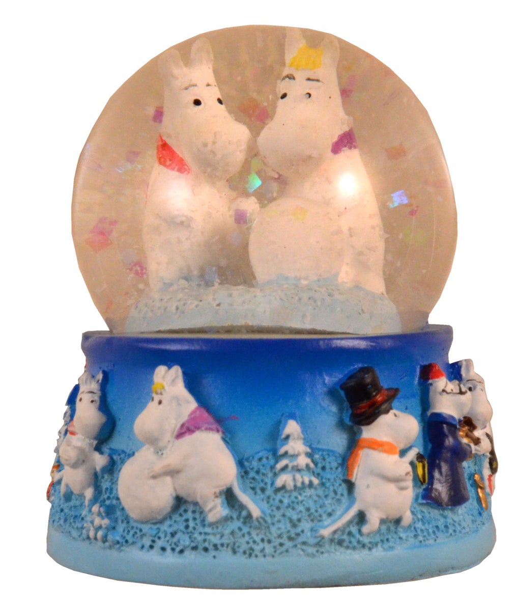 Muumipeikko ja Niiskuneiti lumihiutalepallo magneetti