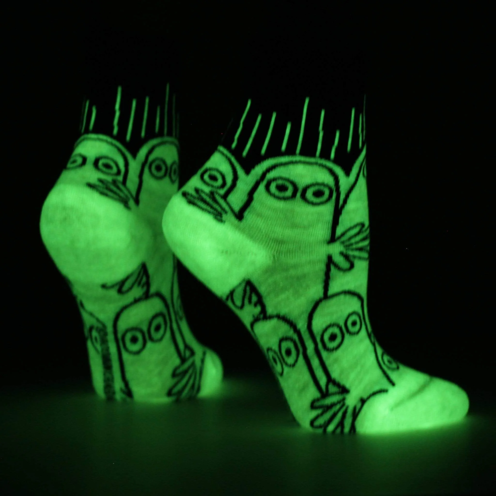 Tuo hauskaa mysteeriä ja turvallisuutta lasten leikkeihin! Nämä Hattivatti Hohto -sukat ovat lasten ehdoton suosikki, sillä ne hohtavat pimeässä – täydellinen lisä pimeisiin iltoihin tai leikkeihin. Valmistettu pehmeästä ja kestävästä kampapuuvillasta, ne pitävät pienet jalat mukavina. Sukkien vahvistetut kärjet ja kannat kestävät reippaampaakin menoa. Saatavilla koissa 23-35. Hauska ja laadukas lahjaidea!