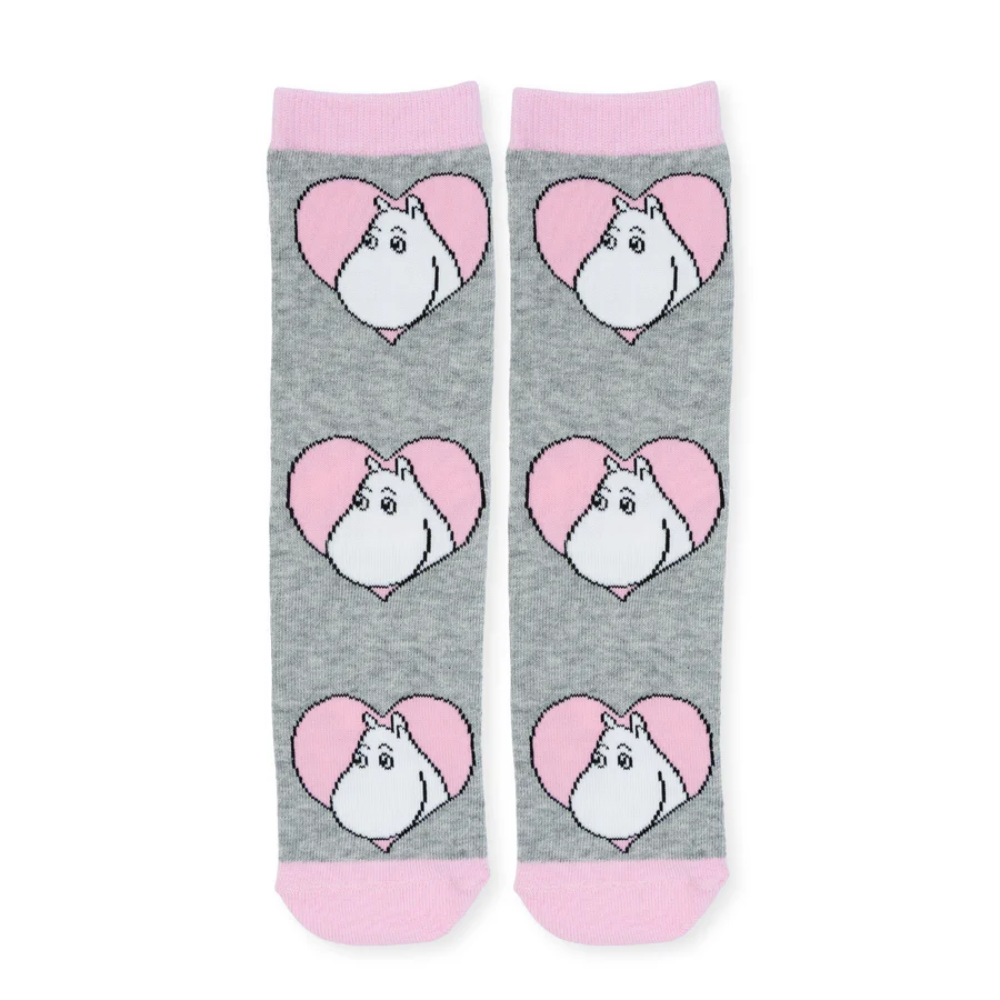 Anna tunteiden näkyä! Nämä Nordicbuddies Rakkaus -sukat Muumipeikon kuvin ja söpöin vaaleanpunaisin sydämin ovat varma valinta tuomaan iloa jokaiseen päivään. Harmaa pohjaväri tekee sukista helposti yhdisteltävät, kun taas vaaleanpunaiset sydämet ja kärki tuovat naisellisen, pehmeän säväyksen. Laadukas puuvillasekoite tuntuu mukavalta ja lämpimältä. Täydellinen tapa muistaa itseäsi tai ystävääsi pienellä arjen luksuksella.