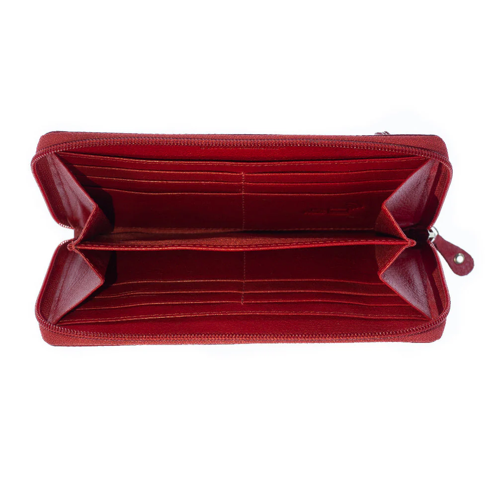 - Vetoketju avautuu ympäri ja säilöö turvallisesti sisälleen rahat, kortit ja kuitit