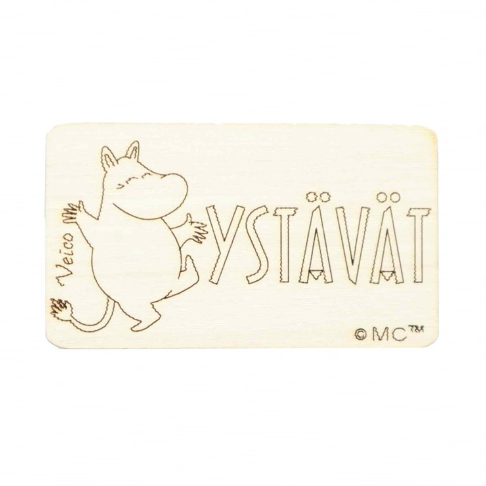 Veicon valmistama puinen Muumi-pyyhemerkki kylpyhuoneeseen tai keittiöön. Tällä merkillä osoitat helposti jokaisen perheenjäsenen oman pyyhepaikan. Merkki on valmistettu suomalaisesta koivusta, ja se on kestävä ja ekologinen valinta kodin sisustukseen. Tuotteen takana on tarrakiinnitys, jonka avulla merkki on helppo kiinnittää tasaiselle pinnalle ilman työkaluja. Tuote on 100 % suomalaista käsityötä.