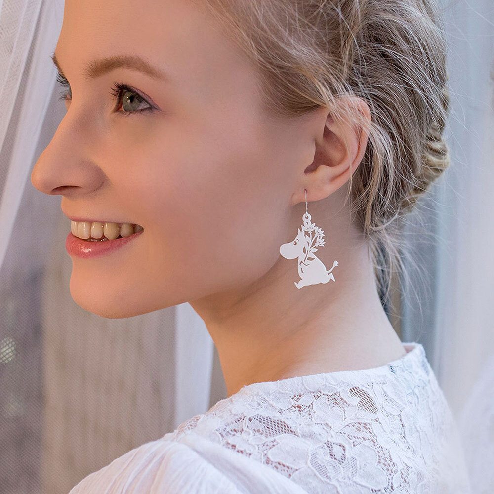 Nämä ihanan kevyet ja allergiaystävällisestä erikoismateriaalista valmistetut Muumipeikko-korvakorut tuovat iloa ja hyvää mieltä päivääsi! Valmistettu Suomessa Muumi-lisenssillä, ne ovat maailman kevyimmät korvakorut, painaen vain pari grammaa, ja sopivat siksi erinomaisesti myös herkimmille korville. Valitse itsellesi sopivin koukkumateriaali kahdesta laadukkaasta vaihtoehdosta.