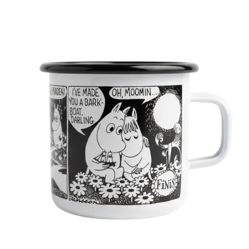 Ainutlaatuinen pala Muumi-historiaa! Tämä viehättävä emalimuki on yksi kuudesta keräilysarjan mukista, jotka julkaistiin Muumi-sarjakuvien luojan, Tove Janssonin, 100-vuotisjuhlavuonna 2014. Sarjakuva-teema on tyylikäs ja nostalginen valinta Muumi-fanille. Kestävä ja kevyt emalimuki sopii erinomaisesti niin kotiin kuin retkille. Se tuo ripauksen ajatonta iloa ja muistoja päivittäisiin kahvihetkiin.