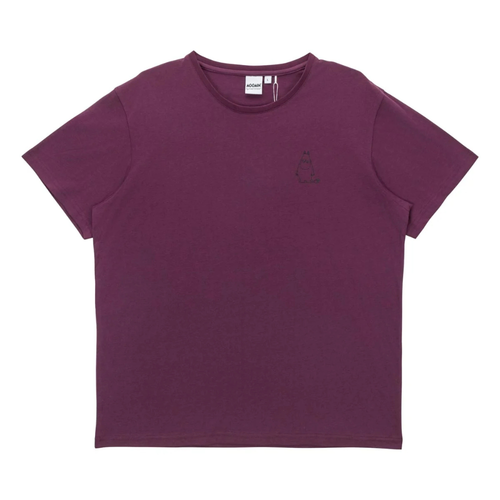 Tämä Alvi-mallinen t-paita on täydellinen valinta rentoon arkipukeutumiseen. Paidassa on upea, syvä luumunpunainen sävy, joka tuo pehmeyttä asuun. Rinnassa komeilee pieni ja huvittava kuva kiukkuisesta Muumipeikosta, ja sama veikeä hahmo toistuu selässä suurempana painatuksena.