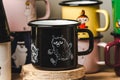 Emalimuki, jossa Haisulin kuvia. Tyylikäs Haisuli muki sopii jokaisen pöydän kahvi ja tee hetkiin.