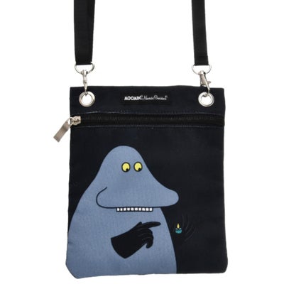 Hauska Mörkö Iltakävelyllä laukku, musta. Laukussa kaksi taskua, joten sinne mahtuu hyvin sekä avaimet ja puhelin. Oivallinen esimerkiksi päiväkodin aikuisille.