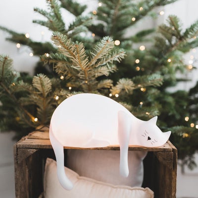 Maailman suloisin valaisin! Makoileva Georges kissa lapsesi yöpöydälle tai hyllylle. Georges valvoo lapsesi unta ja näin lapsesi voi nukahtaa turvallisesti. Kissan häntä ja tassu roukkuvat hyllyn ulkopuolelle. Ihana itselle, mutta varmasti myös lahjansaajalle mieluinen!