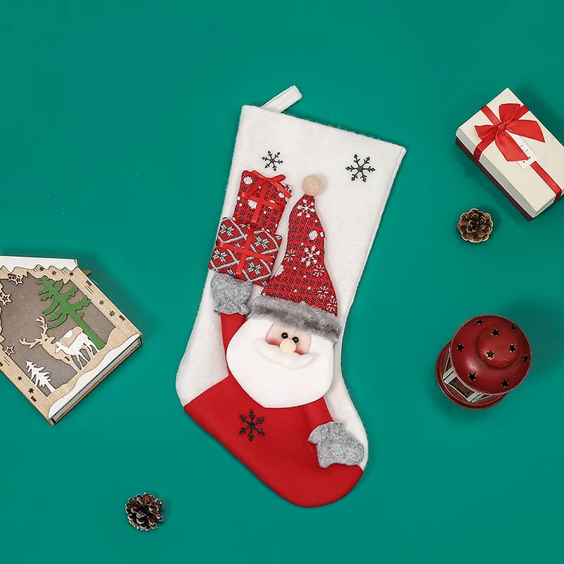 Joulusukka joulupukki on valkoinen, joissa on joulupukkia esittävä kohokuva. Täydellinen käytettäväksi klassisena joulusukkana laittamalla sen sisään pieni lahja ja yllättämällä joku jouluna.