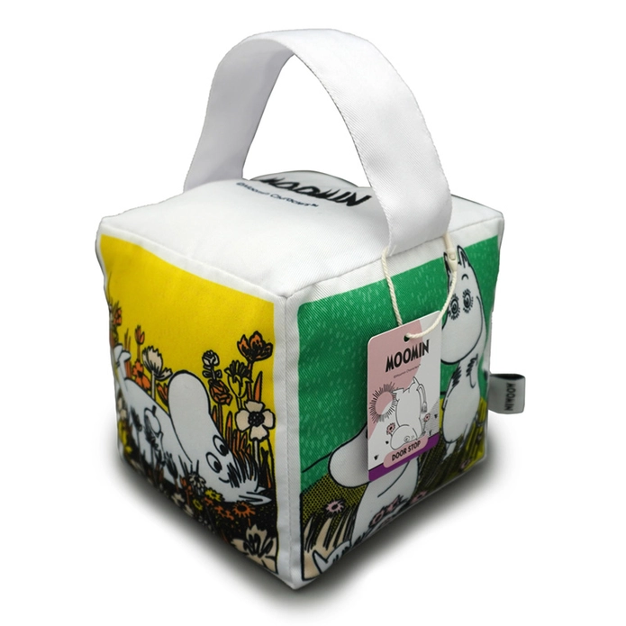 Tämä ihana Muumi kuution mallinen ovistoppari on helppo liikutella kantokahvan ansiosta. Pidä ovet auki kuutiolla ja kuutiota kääntämällä on aina uusi väri. Muumipeikko ja Niiskuneiti seikkailevat kuutiossa.