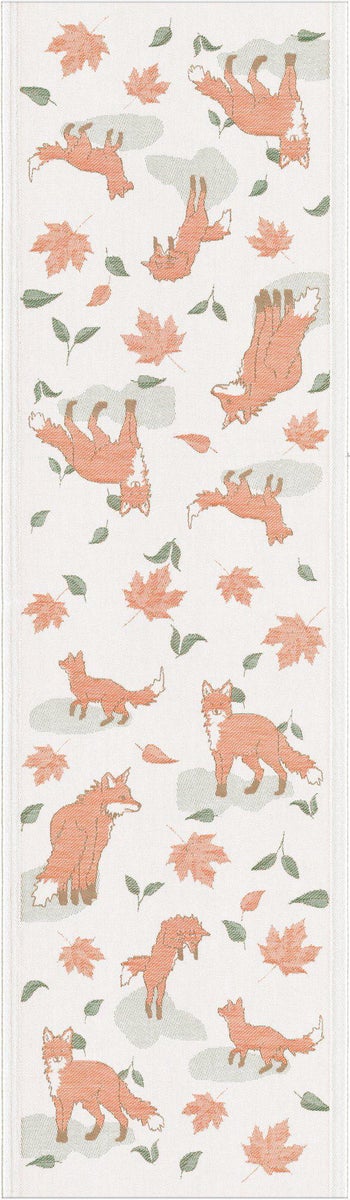 Vaalealla pohjalla seikkailee joukko suloisia oransseja kettuja eri asennoissa, luoden elävän ja iloisen fiiliksen. Kettujen ympärillä on oransseja ja vihreitä lehtiä, jotka tuovat mieleen metsän tunnelman..